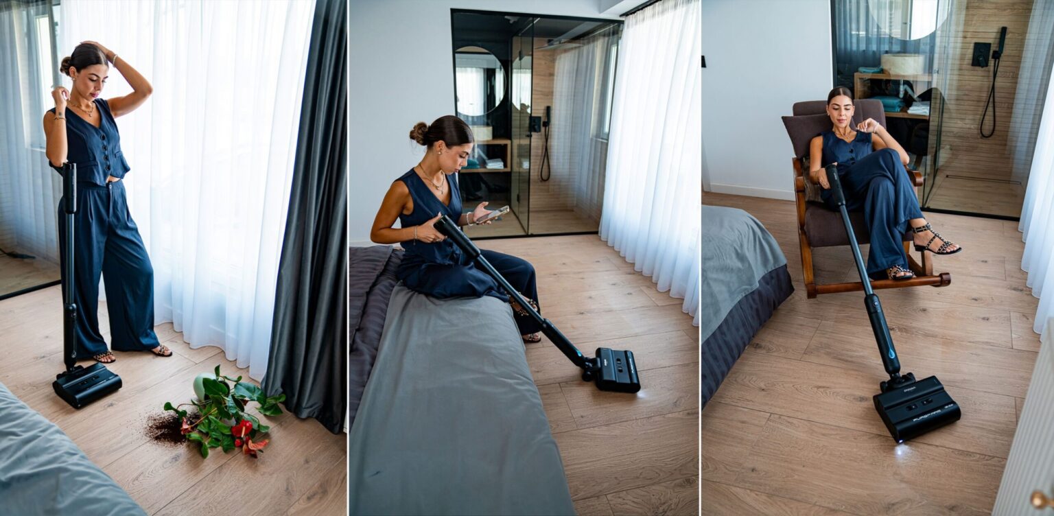 We have reduced the height of the mop head to 8 cm, allowing you to lay it completely flat and rotate the handle to adjust the cleaning direction in hard-to-reach areas, such as under the bed.